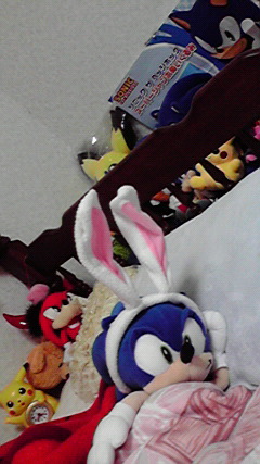 にじのベッドがソニックに乗っ取られたw(気づいたらもなおが勝手に寝かせてた)